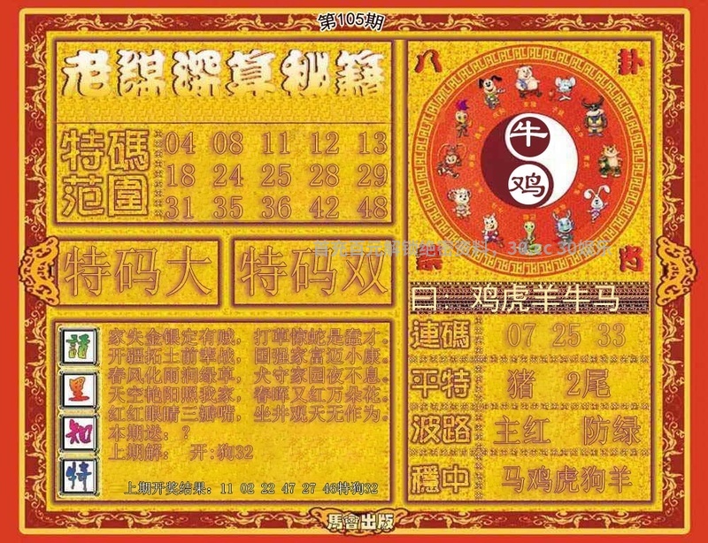 105期:绝杀①肖【鸡鸡】特开狗44准 |