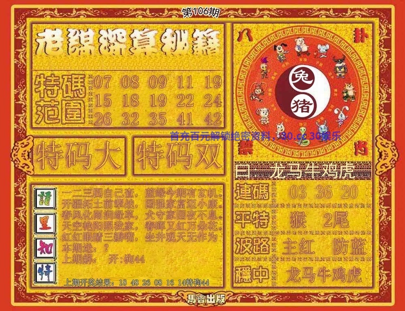 106期:单双两肖『单肖+狗龙』开:猪43准 |