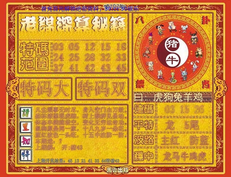 108期:绝杀①肖【牛牛】特开猪07准 |